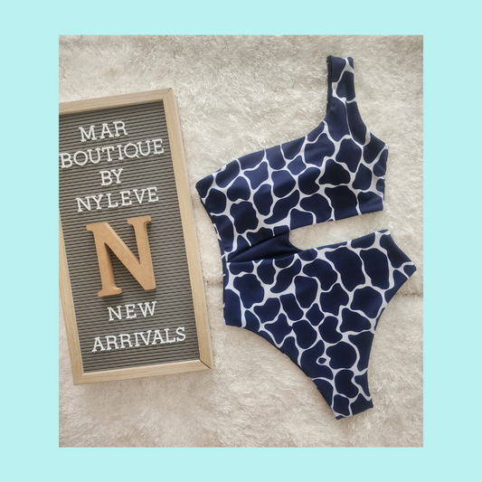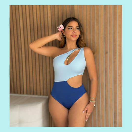 Oceano One Piece/ High Waist - Azul Marino y Blanco - Control de Abdomen - Swimwear